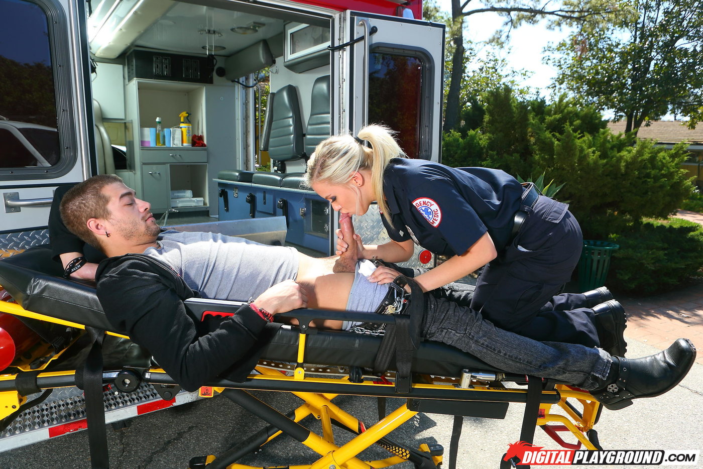 Blue-eyed paramedic bombshell offers a blowjob instead of CPR