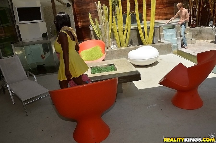 Fat ebony brunette gets her pussy plowed by a big white cock