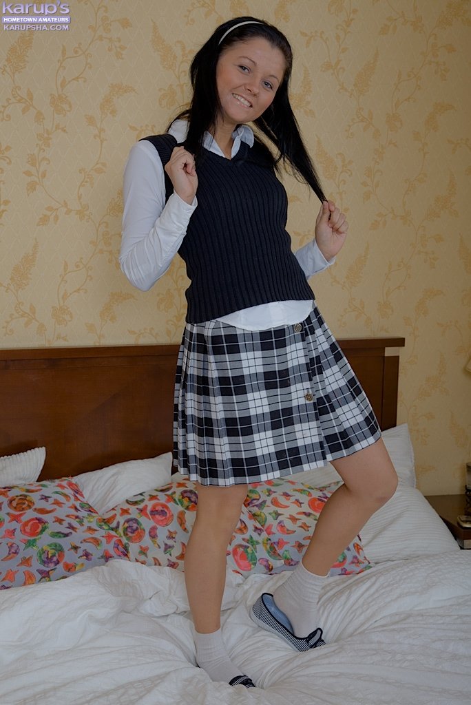 Skirt-wearing schoolgirl hottie gets tight pussy banged from behind